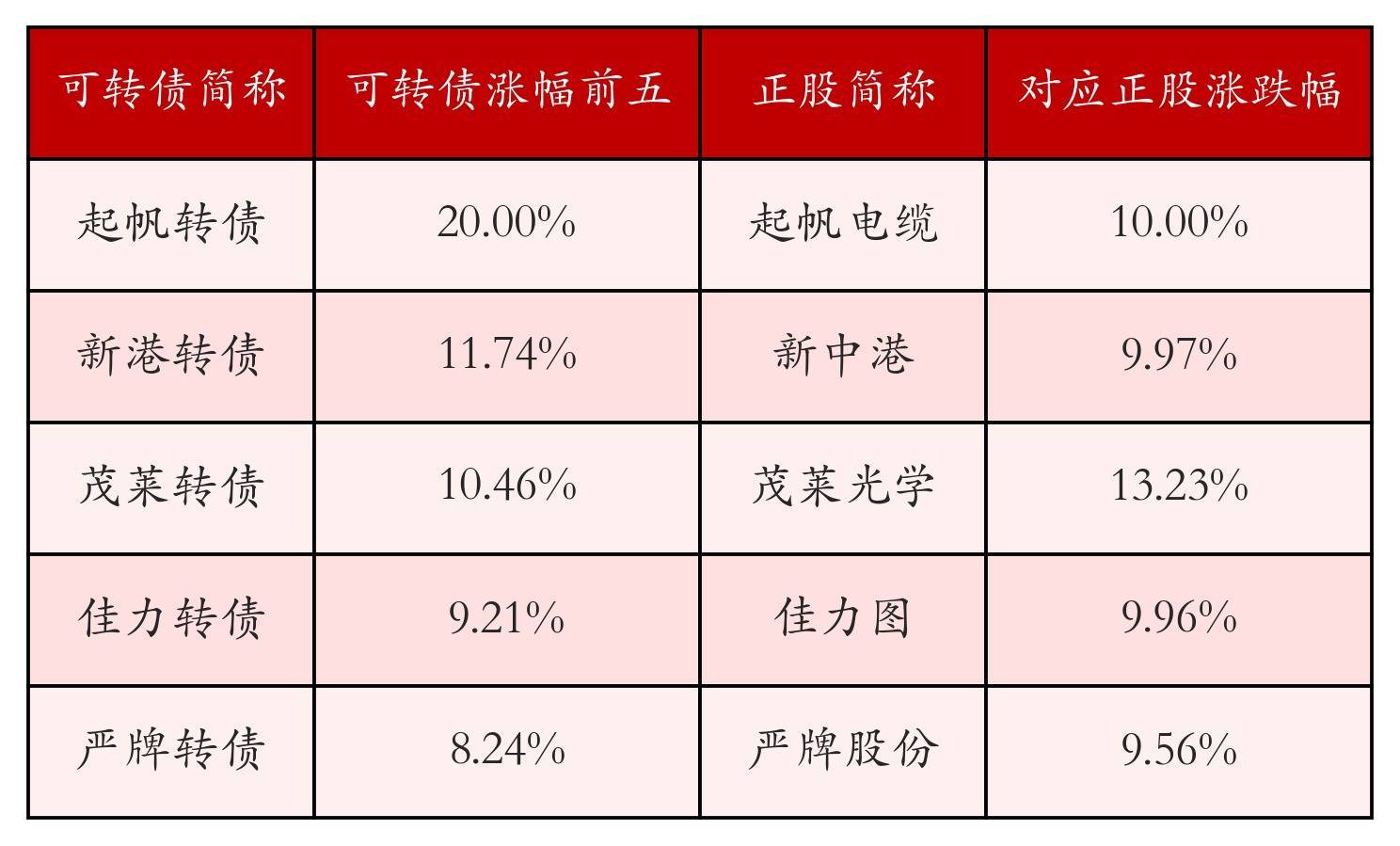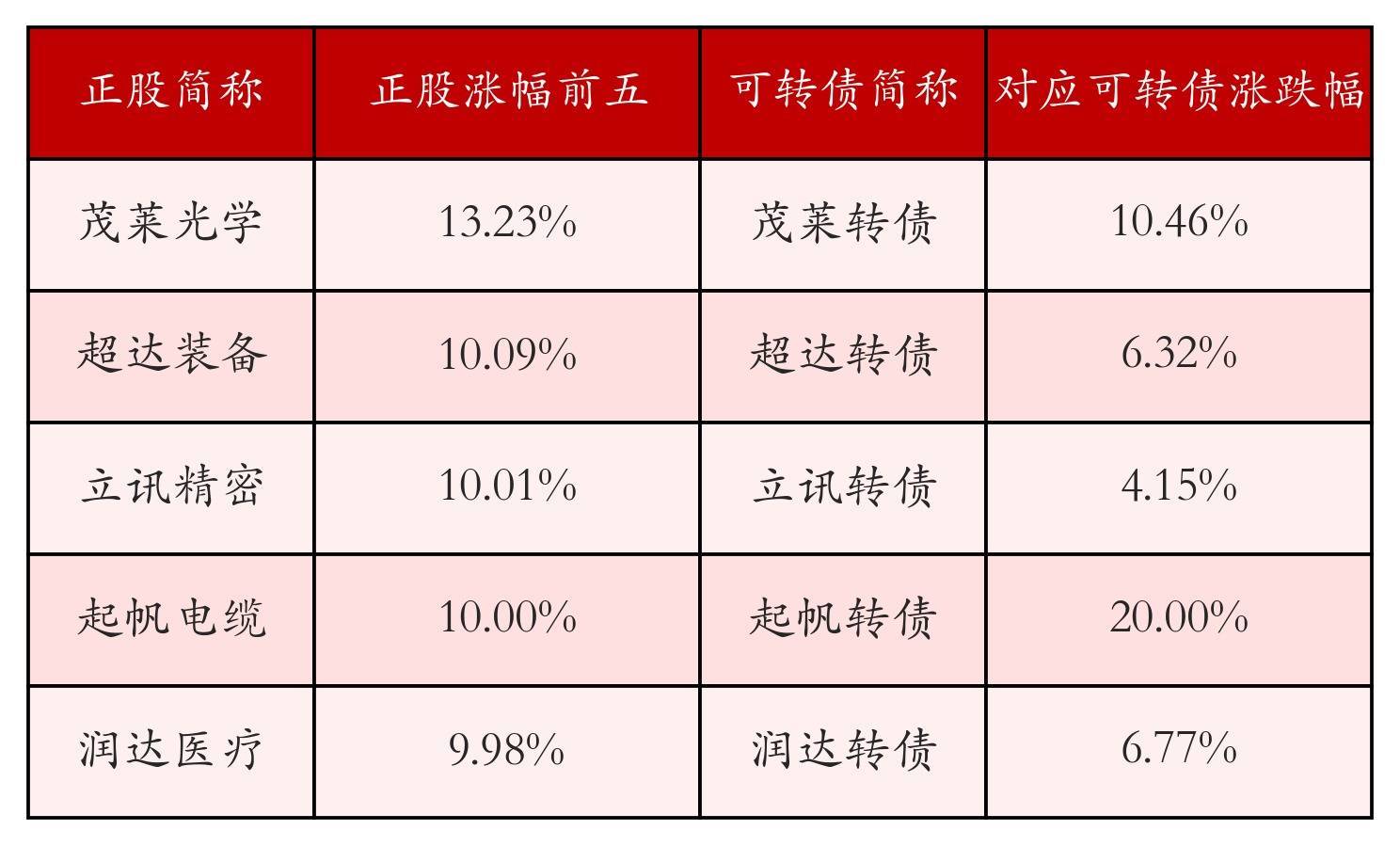 南财智讯4月20日电,盘后数据显示,债市方面,中证转债指数收涨0.09%,报516.28,成交额为750.92亿元。可转债方面炒股配资之家网,今日共成交338只可转债,其中166只收涨,1只收平,171只收跌。具体来看,29只可转债涨幅超过2%。其中起帆转债(111000)涨20.0%,新港转债(111013)涨11.74%,茂莱转债(118061)涨10.46%。今日有11只可转债跌幅超2%,蓝晓转02(123195)跌6.44%,岱美转债(113673)跌4.88%,精装转债(127055)跌3.65%。存在交易量的可转债所对应的正股中,195只收涨,11只收平,132只收跌。具体来看,19只可转债对应正股涨幅超过5%,其中,立讯精密(002475)涨停,收涨10.01%。同时所对应的可转债:立讯转债(128136)同涨4.15%。今日有6只可转债对应正股跌幅超过5%,没有正股跌停。