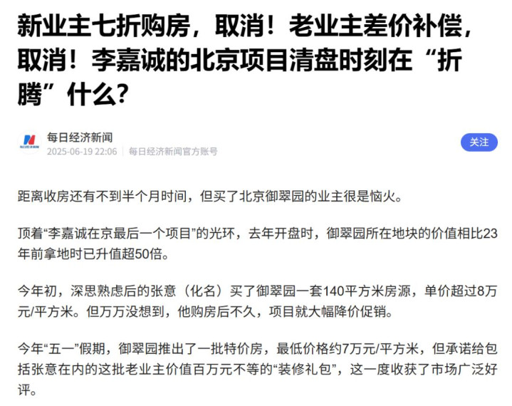 关于这件事,“壹地产”前两天发的文章说的很明白: