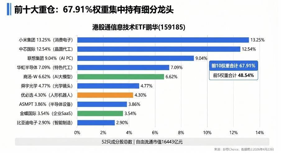 一句话:如果你真正想买的是AI算力、半导体、机器人这些"硬核科技",那港股通信息技术ETF鹏华(159185)才是港股市场里最"对路"的工具。不是科技太差,是你买的科技不够"硬"。